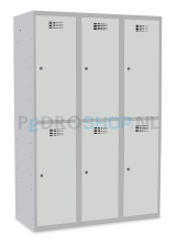 De deuren van deze garderobekast zijn voorzien van perforatiesleuven, wat zorgt voor een goede ventilatie en frisse luchtcirculatie binnen de kast. Iedere kolom is uitgerust met een kledingstang met haken, zodat kleding en accessoires overzichtelijk kunnen worden opgeborgen.