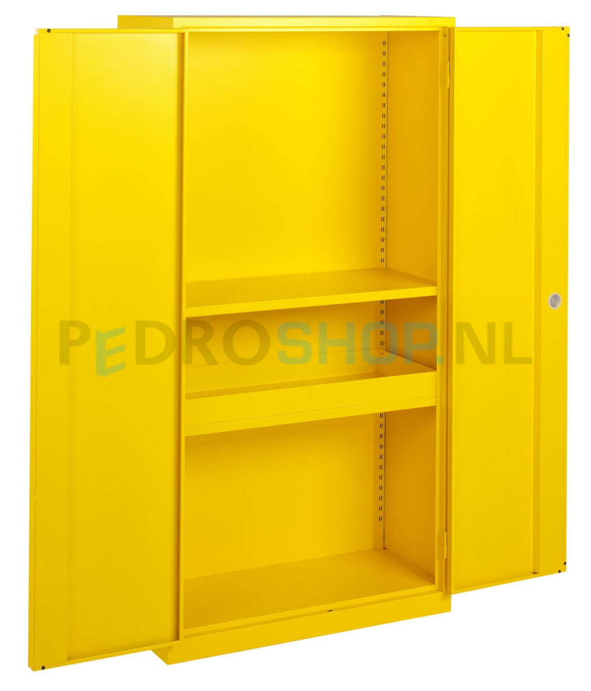 0 Veiligheidskast PDC-195, 195*100*45 cm, voorzien van dichte legborden, geel