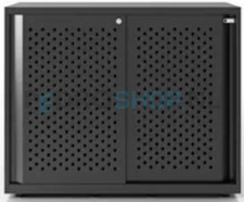 Dit is de Bisley schuifdeurkast Glide II van het formaat 81,9 cm hoogte bij 100 cm breedte en 47 cm diepte. De hoogte van de kast is variabel door de stelpootjes onder de kast: 80,7 tot 83,1 cm. De kleur van deze kast is Zwart RAL9005. De poedercoating van deze kleur is een structuurlak.