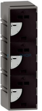 Dit model bestaat uit één kolom met drie deuren. De kolombreedte bedraagt 38 cm, de deuropening 30 cm en de binnenmaat 29 cm – ideaal voor het opbergen van een helm, jas of tas. De kast heeft een hoogte van 130 cm en een diepte van 45 cm.