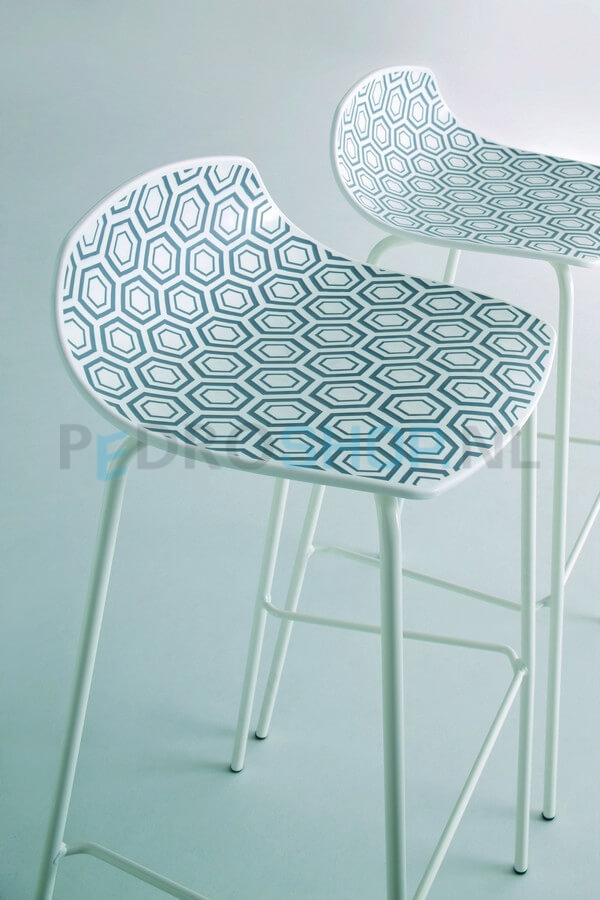 Dankzij de ontwikkeling en toepassing van een innovatief, gepatenteerd productiesysteem geeft de unieke, harmonieuze stijl van de geometrische opdruk een sterk karakter en een onontkenbare schoonheid aan Alhambra. Alhambra bestaat uit een meerkleurig, technopolymere kuip die past bij verschillende frames. Hierdoor is de stoel uiterst geschikt voor verschillende oplossingen, ideeën en ambities in verschillende ruimten en voor zeer persoonlijke smaken.