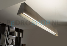 Hanglamp Blonde met zijn prachtige minimalistische aluminium kap is leverbaar in 4 kleuren en diverse lengtematen. Ontworpen door Massimilio Mornati en voorzien van gescheiden directe en indirecte LED verlichting in 2700 Kelvin. Maatvoering 325cm en 405cm prijs op aanvraag.