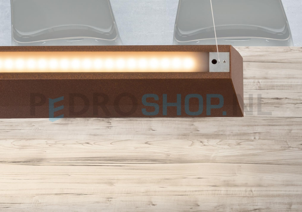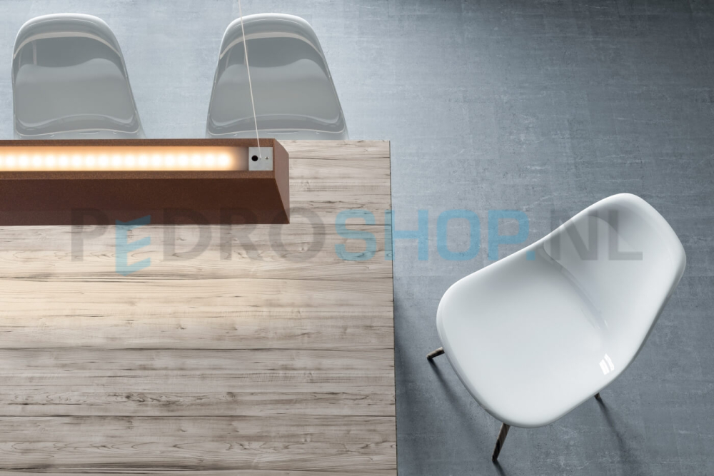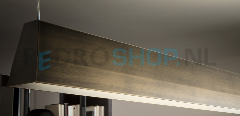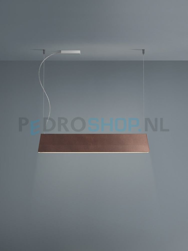 Hanglamp Blonde met zijn prachtige minimalistische aluminium kap is leverbaar in 4 kleuren en diverse lengtematen. Ontworpen door Massimilio Mornati en voorzien van gescheiden directe en indirecte LED verlichting in 2700 Kelvin. Maatvoering 325cm en 405cm prijs op aanvraag.