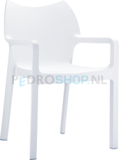 Een robuuste armstoel in 100% recyclebaar polypropyleen. Stapelbaar en geschikt voor binnen en buiten. Uit voorraad leverbaar in 8 kleuren.