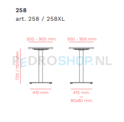 Mara kolomtafel in diverse hoogtes en kleuren uit voorraad leverbaar. Voorzien van stabiele voetplaat en stevige bladdrager.