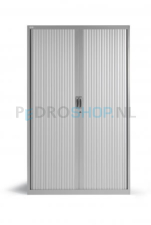 De NG roldeurkast optimaliseert uw opbergmogelijkheden. Voorzien van een vlakke bodemplaat (t.b.v. gebruik van ordners) en een zeer lage stabiele sokkel met 4 stelvoetjes. De deuren met verticale gladde lamellen zijn brandvertragend en leverbaar in vele kleurcombinaties.
