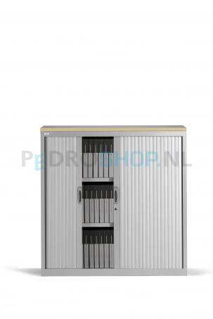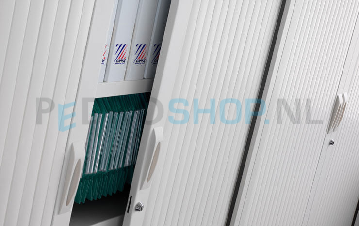 De NG roldeurkast optimaliseert uw opbergmogelijkheden. Voorzien van een vlakke bodemplaat (t.b.v. gebruik van ordners) en een zeer lage stabiele sokkel met 4 stelvoetjes. De deuren met verticale gladde lamellen zijn brandvertragend en leverbaar in vele kleurcombinaties.