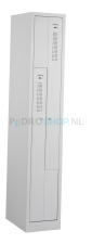 Heeft u weinig ruimte maar toch garderobekasten nodig? Dan is de PDC-230 Z-garderobekast een slimme keuze. Dankzij de praktische Z-indeling biedt deze kast verrassend veel opbergruimte binnen een compacte footprint. Iedere deur beschikt over zowel hang- als legmogelijkheden, waardoor gebruikers hun kleding en persoonlijke eigendommen efficiënt kunnen opbergen.
