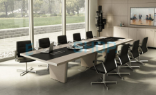 De exclusieve management-lijn X8 van het Italiaanse Officity, strak en puur design. Massief aluminium frames in mat wit of mat donkergrijs (shadow grey) met 10mm dunne geprofileerde bladen van melamine, glas of gelakt hout.