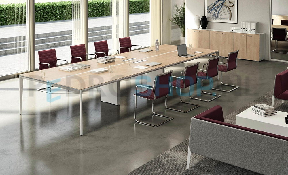 X5 is ontworpen om uw directiekamer perfect in te kunnen richten door haar eindeloze configuraties en tijdloze uitstraling. Het metalen onderstel is leverbaar in wit en shadow grey en de bladen zijn uitgevoerd in melamine (leverbaar in 6 kleuren).