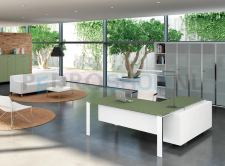 X7 meubilair van Officity (by Quadrifoglio), Italiaans design voor directiekamer en vergaderruimte. Vakmanschap in metaalbewerking, zoals de fraaie chromen of witte poten (in 4-poots OPEN of ringvorm CLOSED), met 10mm dunne zwevende geprofileerde bladen van melamine, glas of gelakt hout. Aantrekkelijke accenten zoals de chromen bladhoeken en het slimme kabelmanagement maken van dit praktische meubel een ware eye-catcher. Levertijd 4-6 weken.
