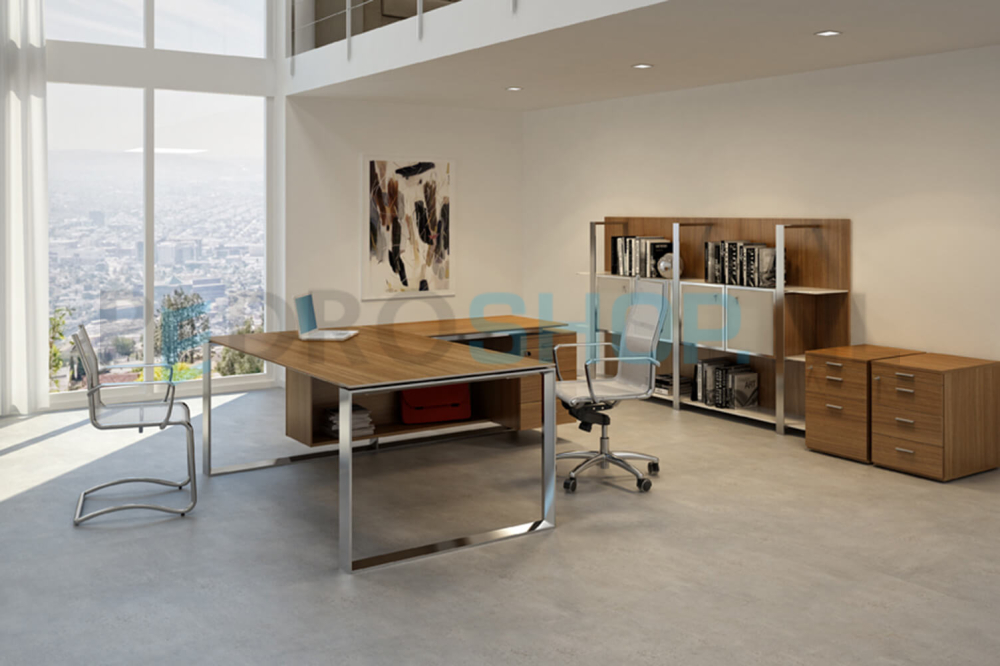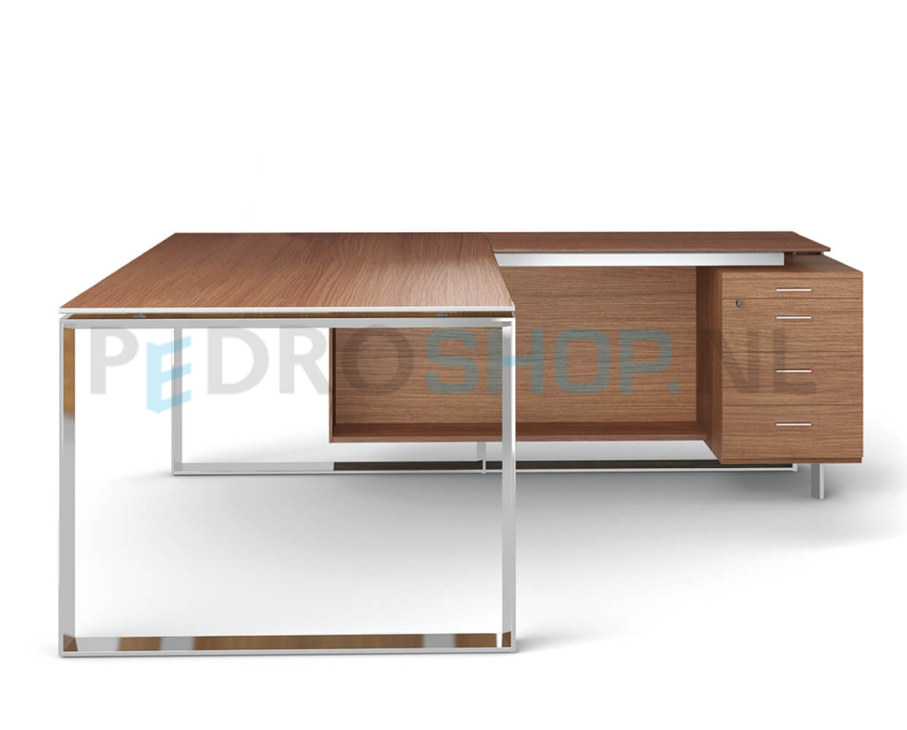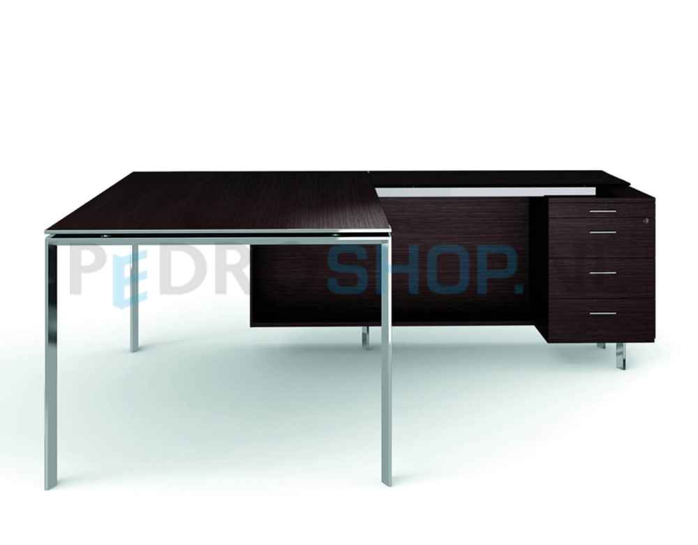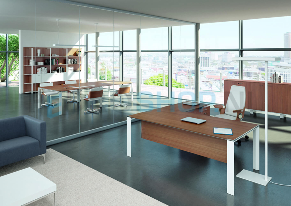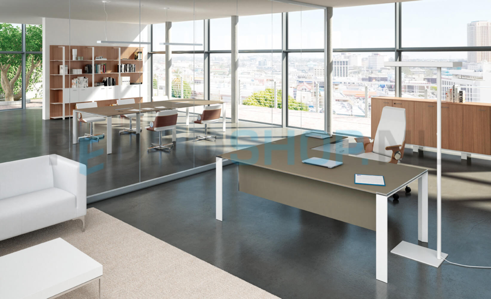 X7 meubilair van Officity (by Quadrifoglio), Italiaans design voor directiekamer en vergaderruimte. Vakmanschap in metaalbewerking, zoals de fraaie chromen of witte poten (in 4-poots OPEN of ringvorm CLOSED), met 10mm dunne zwevende geprofileerde bladen van melamine, glas of gelakt hout. Aantrekkelijke accenten zoals de chromen bladhoeken en het slimme kabelmanagement maken van dit praktische meubel een ware eye-catcher. Levertijd 4-6 weken.