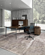 X9 bureau van Quadrifoglio. X5 is ontworpen om uw directiekamer perfect in te kunnen richten door haar eindeloze configuraties en tijdloze uitstraling. Het metalen onderstel is leverbaar in wit en shadow grey en de bladen zijn uitgevoerd in melamine (leverbaar in 6 kleuren). Designed by Polloni