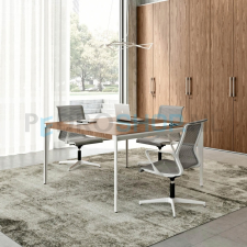 X9 directiemeubilair kenmerkt zich door zijn prachtige opgedikte houtfineer bladen.Het ranke metalen design frame is zo ontworpen dat het een zeer fraaie eenheid vormt met de 50mm bladen. Door de conische poten ontstaat er een verrassend lijnenspel. Leverbaar in 3 kleuren fineer en te combineren met diverse lederen inzetstukken.