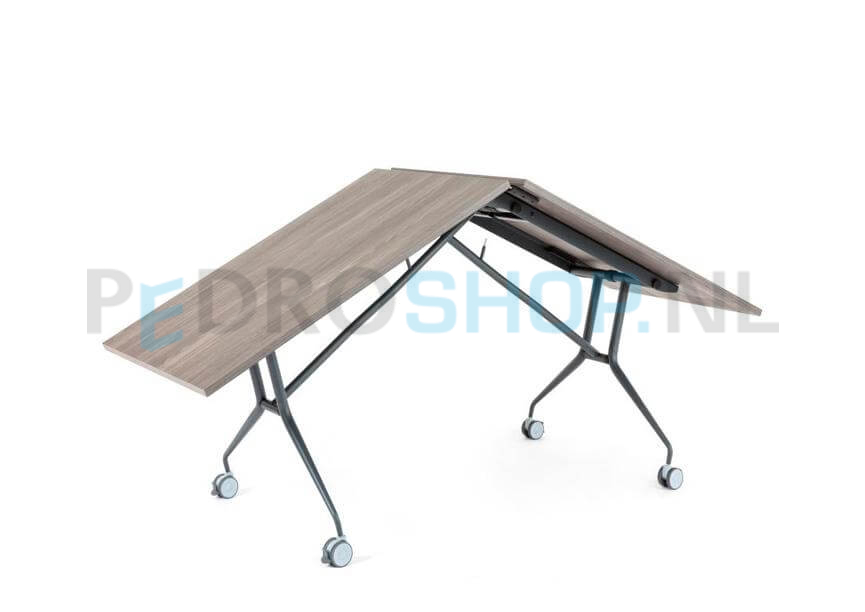 Agro Libro vouwtafel heeft een elegant buizenframe met grote 75mm zwenkwielen uitgevoerd met rem. Leverbaar in 5 kleuren onderstel met antraciet bladdraagframe. De bladen worden voorzien van koppelbeugels met veilig bladveersysteem wat vingerklemmen voorkomt. Met Agro Libro kunt u een meetingtafel creëeren van 200x100cm tot 320x100cm. Agro Libro frame wordt voorgemonteerd geleverd.