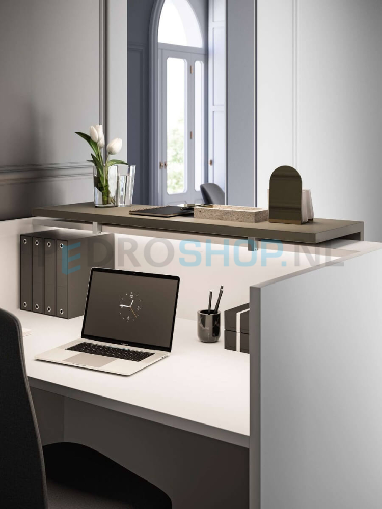 Z2 is een uiterst modern en modulair balieprogramma. Uitgevoerd in duurzaam Melamine met prachtige verstekhoeken. De opzetelementen zijn desgewenst in melamine te leveren of in een van de vele lakkleuren . Een ruime keuze aan opties zoals LED verlichting of kabeldoorvoeren , als de keuze voor hoge of lage elementen behoren tot de mogelijkheden. Andere kleuren en of maten op aanvraag.