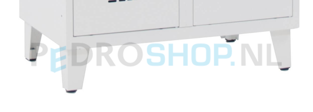 De deuren zijn voorzien van perforatiesleuven voor optimale ventilatie. Iedere kolom is uitgevoerd met een schoon/vuil scheiding, zodat werkkleding overzichtelijk gescheiden kan worden bewaard. Aan de binnenzijde bevindt zich een spiegel met daaronder een handdoekhaakje voor extra gebruiksgemak. Daarnaast worden zelfklevende labelhouders standaard meegeleverd, zodat elk compartiment eenvoudig te identificeren is.