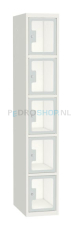 De SQ Classic Lockerkast 5-deurs met transparante deuren. De lockerkasten zijn naar eigen wens samen te stellen. Opties uit verschillende kleuren deuren en ombouw. Deze lockerkast kent voor de deuren de kleurcode: Lichtgrijs Ral 7035 en voor de ombouw: Wit Ral 9010.