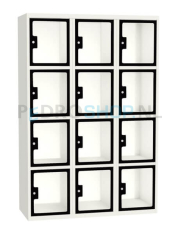 0 SQ Classic lockerkast, 3-koloms, 12-deurs, transparant venster, zwart, h180*b120*d50 cm