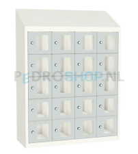 0 SQ Classic kantine locker, 4-koloms, 20-deurs, transparant venster, lichtgrijs