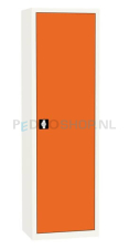 Deze draaideurkast is geheel na eigen wens samen te stellen. De draaideurkast kent voor de deuren de kleurcode: Oranje ral 2004 en voor de ombouw: Wit ral 9010.
