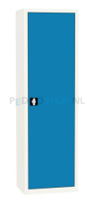Deze draaideurkast is geheel na eigen wens samen te stellen. De draaideurkast kent voor de deuren de kleurcode: Blauw ral 5012 en voor de ombouw: Wit ral 9010.