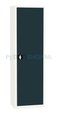 Deze draaideurkast is geheel na eigen wens samen te stellen. De draaideurkast kent voor de deuren de kleurcode: Antraciet ral 7016 en voor de ombouw: Wit ral 9010.