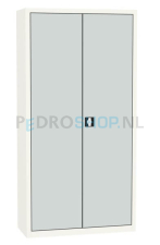 Deze draaideurkast is geheel na eigen wens samen te stellen. De draaideurkast kent voor de deuren de kleurcode: Lichtgrijs ral 7035 en voor de ombouw: Wit ral 9010.