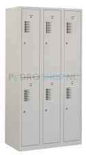 0 Garderobekast PDC-180, 3-koloms, 6-deurs, 90 cm breed, lichtgrijs