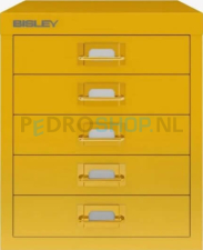 Meerladenkast Bisley-5, A4 formaat, 5 laden, handgreep gekleurd, zonnebloemgeel