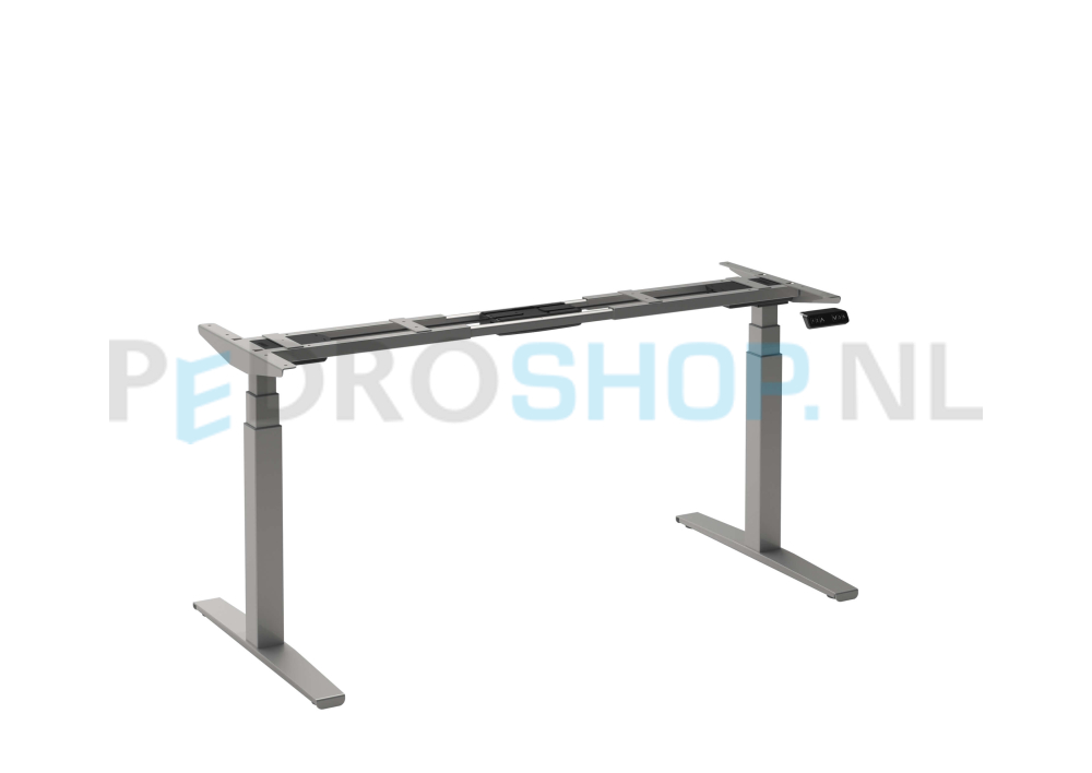 Dit elektrische bureau DSQ kent een aluminium RAL9006 poot en een wit blad.