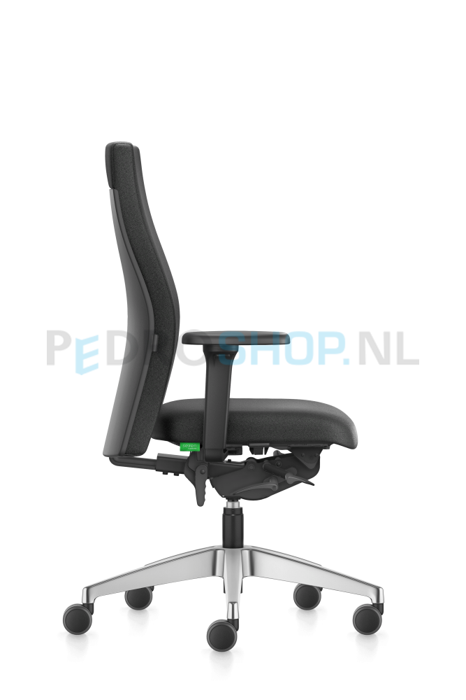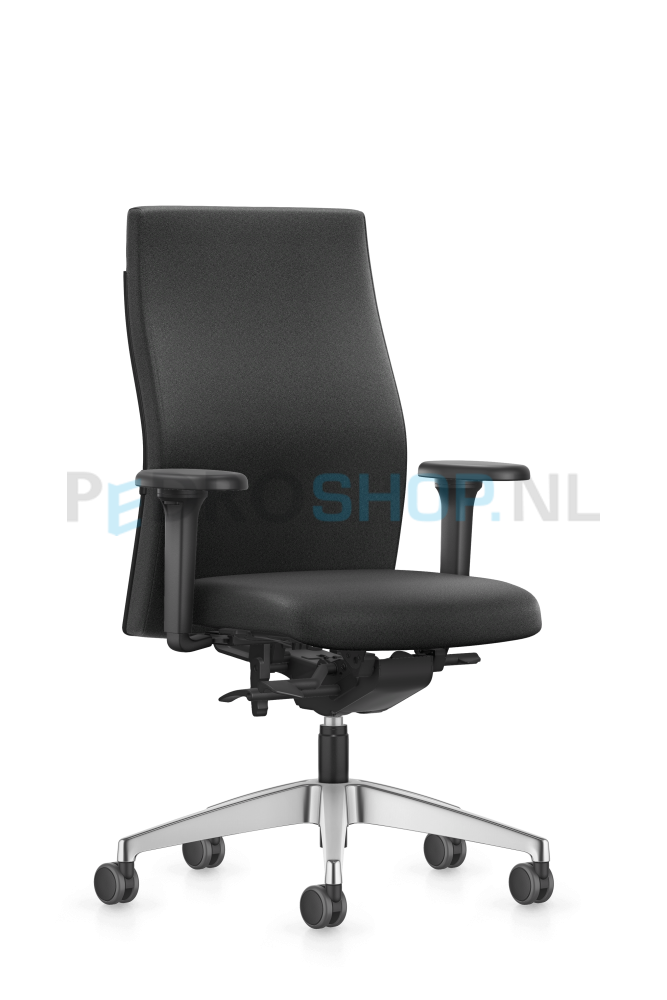 De stoel is voorzien van een 5 cm dikke zitting. De gestoffeerde rugleuning zorgt voor een comfortabele ondersteuning. Daarnaast biedt deze NPR 1813 bureaustoel ruime verstelmodelijkheden en is de rugleuning voorzien van een verstelbare lendesteun. Je kunt de gewichtsregeling aanpassen, de hoogte van de rugleuning, de diepte van de lendensteun en de diepte van de zitting. De NPR-armleggers zijn voorzien van een zachte opdek, 360° draaibaar en in hoogte, breedte en diepte instelbaar.