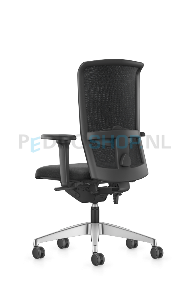 De stoel is voorzien van een 5 cm dikke zitting. De gestoffeerde rugleuning zorgt voor een comfortabele ondersteuning. Daarnaast biedt deze NPR 1813 bureaustoel ruime verstelmodelijkheden en is de rugleuning voorzien van een verstelbare lendesteun. Je kunt de gewichtsregeling aanpassen, de hoogte van de rugleuning, de diepte van de lendensteun en de diepte van de zitting. De NPR-armleggers zijn voorzien van een zachte opdek, 360° draaibaar en in hoogte, breedte en diepte instelbaar.