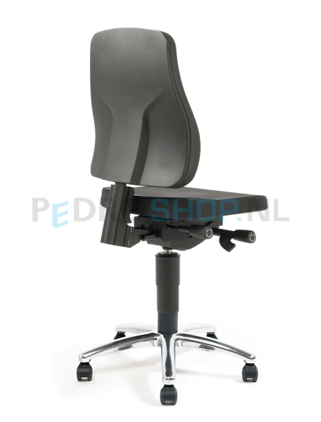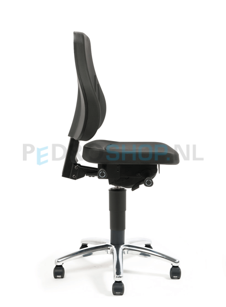 Deze werkplaatsstoel is voorzien van hoogwaardige PU-schuimvulling, die CFK-vrij is en uitstekend ventileert. De voorgevormde zitting met geïntegreerde bekkensteun aan de achterzijde stimuleert een natuurlijke en gezonde zithouding. De afgeronde voorzijde voorkomt drukpunten bij de bovenbenen en bevordert een betere doorbloeding, waardoor langdurig comfortabel zitten mogelijk is.