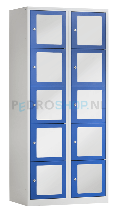 0 Lockerkast PDC-330, 2-koloms, 10-deurs, transparant venster, blauw