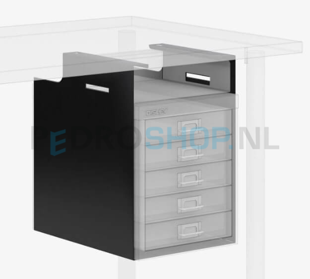 Voor het vullen van de meerladenkast met de gewenste documentatie of onderdelen wordt aangeraden om te beginnen bij de onderste lade. En zo steeds een lade hogerop werken.