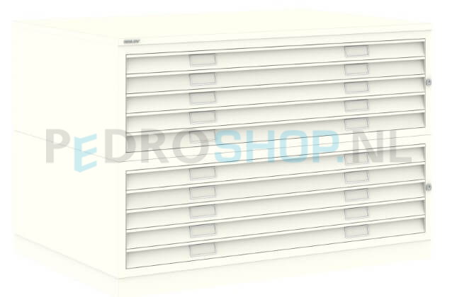 0 Tekeningkast Bisley A010, A0 formaat, 10 laden, krijtwit