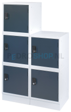 Persoonlijke spullen en papieren kunnen veilig worden opgeborgen in de cube locker PDC-445. De locker is standaard voorzien van een cilinderslot inclusief 2 sleutels op de lockerdeur af te sluiten. Om het cilinderslot treft u een kunststof handgreep voor het makkelijk openen van de lockerdeur. Als optie kunt u kiezen voor een valgrendelsluiting voor gebruik van een hangslot of een elektronisch pincodeslot. Let wel: bij een elektronisch pincodeslot zal de kunststof handgreep worden weggelaten.