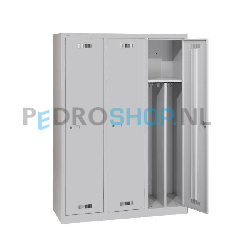 0 Bisley schoon/vuil garderobekast Monobloc, 3-deurs, lichtgrijs, 120 breed