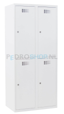 De garderobekast wordt standaard geleverd met een cilinderslot inclusief twee sleutels. Dit slot beschikt over een moedersleutelfunctie, ideaal voor gebruik in omgevingen waar meerdere kasten centraal worden beheerd. Naast het cilinderslot zijn ook andere sluitopties verkrijgbaar, zoals een valgrendelslot, een mechanisch cijferslot en een elektronisch pincodeslot.