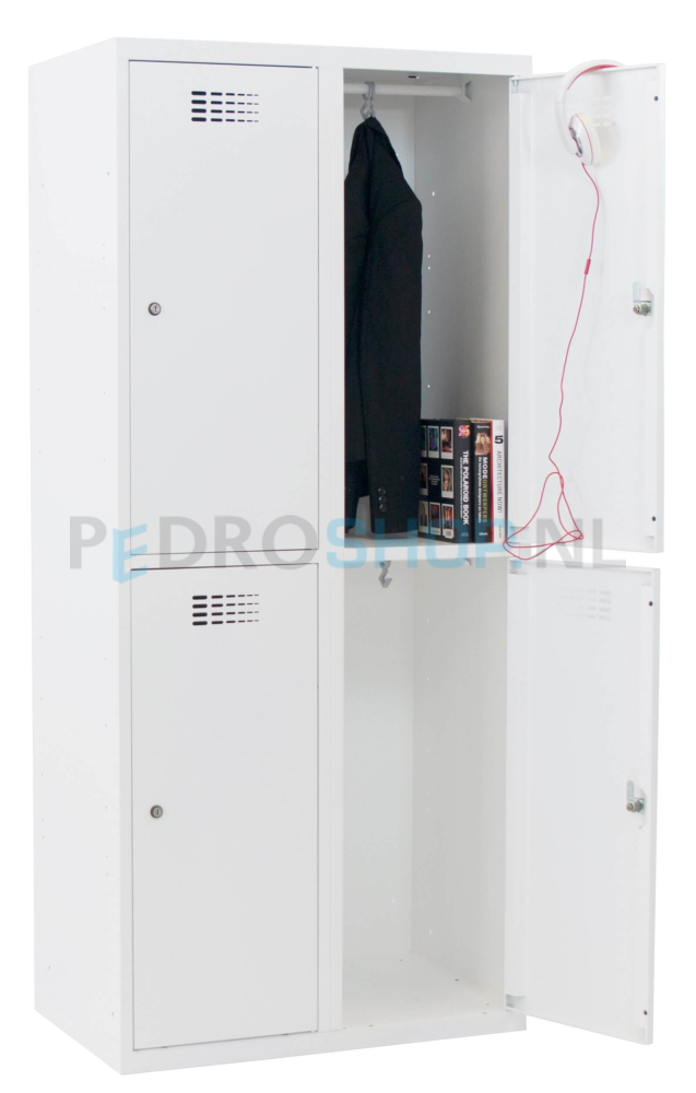 De garderobekast wordt standaard geleverd met een cilinderslot inclusief twee sleutels. Dit slot beschikt over een moedersleutelfunctie, ideaal voor gebruik in omgevingen waar meerdere kasten centraal worden beheerd. Naast het cilinderslot zijn ook andere sluitopties verkrijgbaar, zoals een valgrendelslot, een mechanisch cijferslot en een elektronisch pincodeslot.