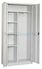 De bezem, dweil, stofzuiger en overige schoonmaakmiddelen netjes opruimen achter slot? Zet hiervoor de PDC schoonmaakkast in. De PDC-T180 bezem- schoonmaakkast is een stevige stalen kast welke beschikt over hanghaken voor opbergen van bezems en dweilen. Over de totale breedte van de kast treft u een legbord. Het linker gedeelte van de kast is voorzien van drie legborden. Door het doorlopende tussenschot ontstaat er meer legruimte in de kast. Doordat er vel legruimte is, is er voldoende ruimte voor het opbergen van schoonmaakartikelen. Het rechter gedeelte van de kast kent een kledingroede met verschuifbare haken.