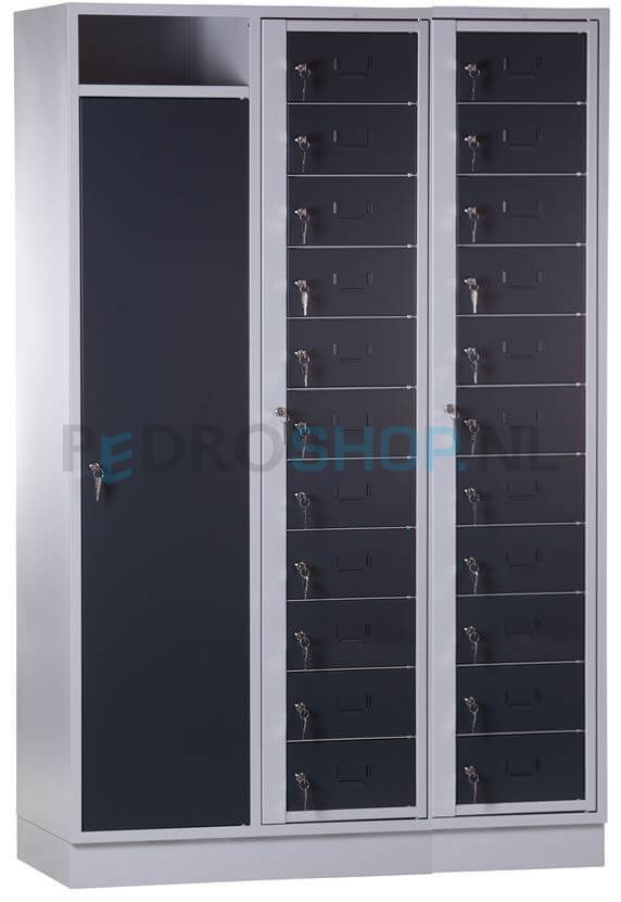 SQ combinatie kledinguitgifte- en was opvangkast, antraciet, 22-deurs