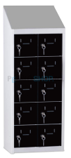 Met een afmeting van h109 x b43 x d30 cm biedt de kast voldoende ruimte voor 10 mini lockers, verdeeld over 2 kolommen met ieder 5 lockers. Elke locker heeft een afmeting van h16 x b15 x d27 cm.